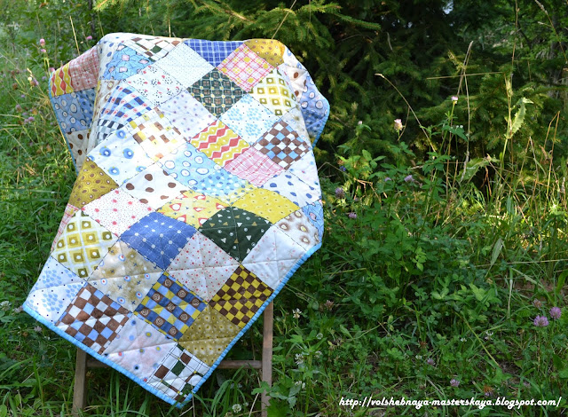 Этот плед можно было бы назвать "Сапоги для сапожника". Работаю я значит над одним из заказов, и вдруг меня озадачивают вопросом "Мама, а когда ты уже МНЕ сошьёшь плед?". А ведь и правда - нет у ребенка маминого пледа. Всё есть, а пледа и нет))) Как-то неловко чувствовать себя матерью-ехидной скажу я вам, поэтому немедленно всё отложила и выслушала все пожелания самого важного заказчика))) Собственно претензий было немного, самое главное -машинки чтобы были и многовсякихразныхдругихцветов. Все цвета заказчик выбирал-выуживал из корзины сам из остатков от предыдущих проектов. А я уже выбирала цвета, подходящие для нашей комнаты.